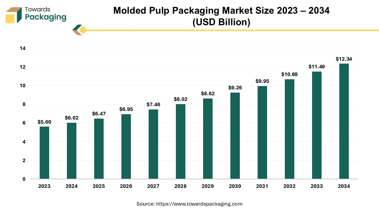 Ottawa, Feb. 11, 2025 (GLOBE NEWSWIRE) — The global molded pulp packaging market size to rise from USD 6.47 billion in 2025 to USD 12.34 billion by 2034, a study published by Towards Packaging a sister firm of Precedence Statistics.