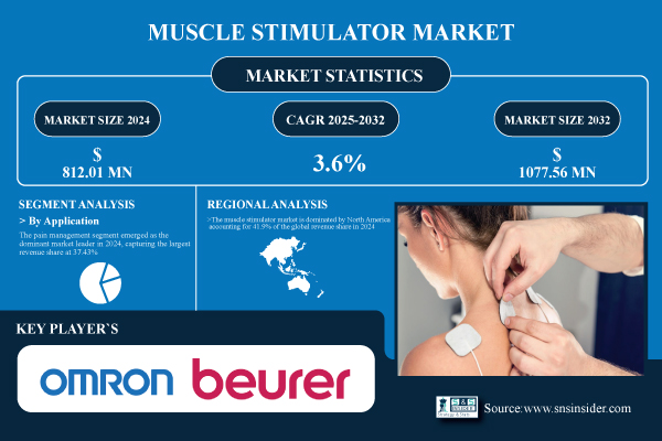 According to SNS Insider, the Muscle Stimulator Market size was valued at USD 812.01 million in 2024 and is projected to reach USD 1077.56 million by 2032. The market is expected to grow at a CAGR of 3.6% during the forecast period from 2025 to 2032.