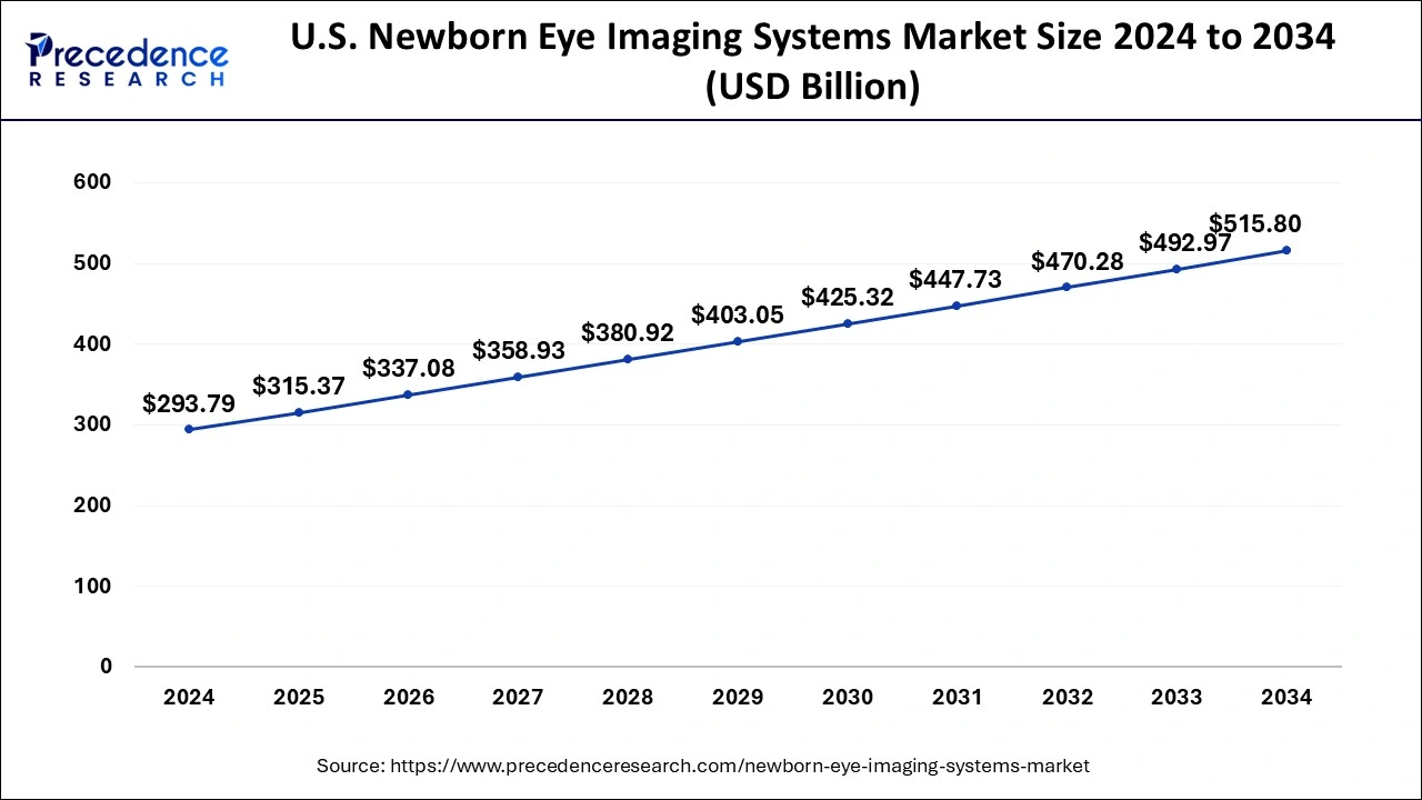 According to Precedence Research, the U.S. newborn eye imaging systems market size is expected to lead USD 515.80 million by 2034, increasing from USD 315.27 million in 2025. The market is growing at a notable CAGR of 5.60% from 2025 to 2034.