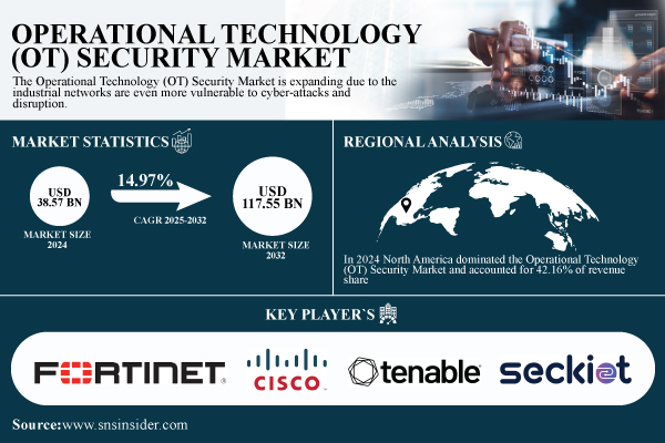 According to the SNS Insider,“The Operational Technology (OT) Security Market size was USD 38.57 Billion in 2024 and is projected to grow by USD 117.55 Billion by 2032, expanding at a CAGR of 14.97% over 2025-2032.”