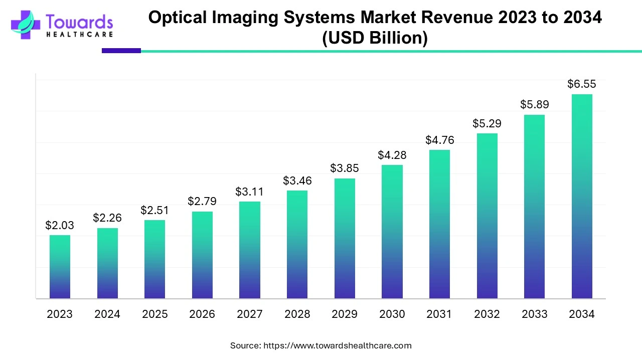 The global optical imaging market size is calculated at USD 2.51 billion in 2025 and is expected to reach around USD 6.55 billion by 2034, growing at a CAGR of 11.24% for the forecasted period.