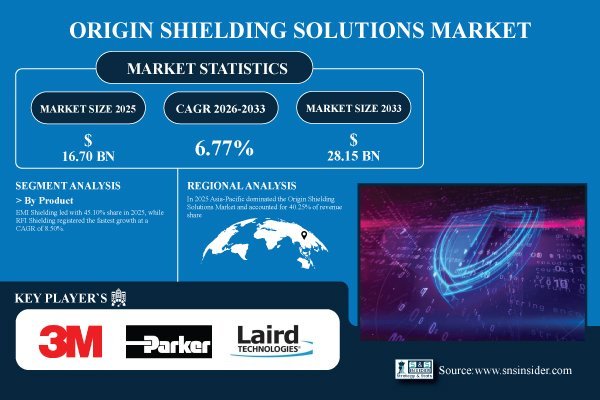 According to the SNS Insider,“The Origin Shielding Solutions Market size was valued at USD 16.70 Billion in 2025E and is projected to reach USD 28.15 Billion by 2033, growing at a CAGR of 6.77% during 2026-2033.”
