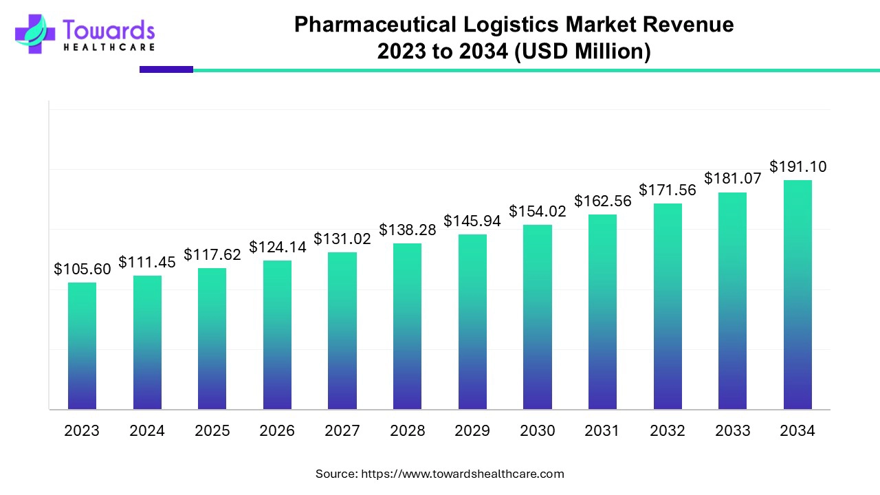 The global pharmaceutical logistics market size is calculated at USD 117.62 million in 2025 and is expected to reach around USD 191.1 million by 2034, growing at a CAGR of 5.54% for the forecasted period.