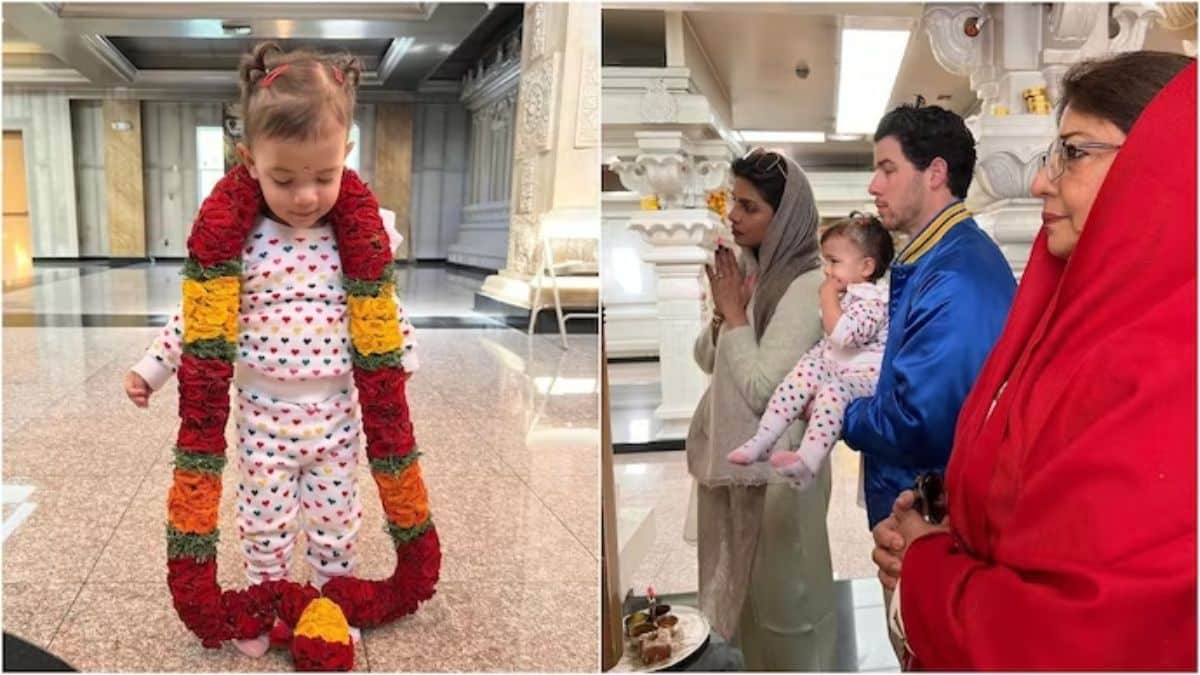 The star couple celebrated Malti Marie’s birthday on the beach, followed by a birthday party with friends and family. In new images, Malti can be seen wearing a garland while visiting a temple in the United States with Priyanka, Nick and grandmother Madhu Chopra for a special puja.