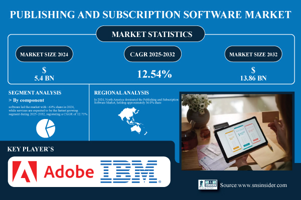 Austin, Dec. 02, 2025 (GLOBE NEWSWIRE) — The Publishing and Subscription Software Market size was valued at USD 5.4 Billion in 2024 and is projected to reach USD 13.86 Billion by 2032, growing at a CAGR of 12.54% during 2025-2032.