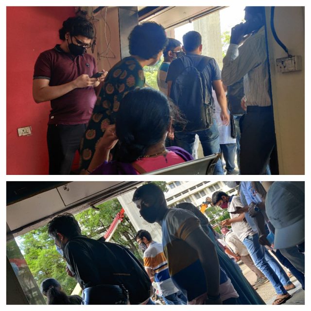 Sahyadri Hospital which is one of the largest chains of hospitals in Maharashtra provides COVID-19 vaccines at a fixed rate. During one such day of vaccination drive, it was found that the people from all age groups (above 18) gathered in a ruckus in the hospital. Though the masks were safely worn by all, social distancing was hardly seen. Even while getting the vaccination for safety, the waiting area became a high-risk zone putting a lot of citizens in danger. Here are some clicks while waiting for the vaccination: