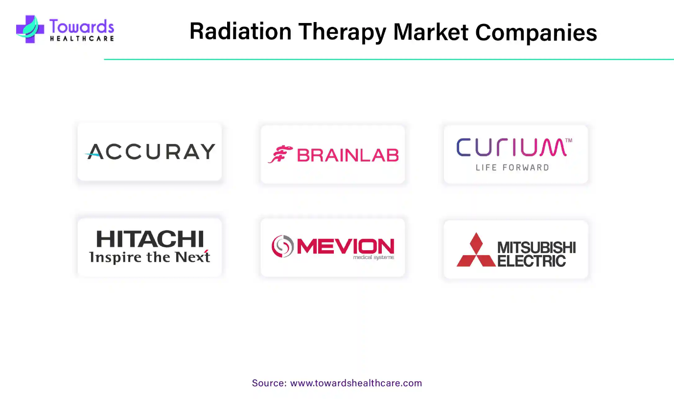 Accuray Incorporated, Brainlab AG, Curium, Canon Medical Systems Corporation, Elekta AB, Hitachi High-Tech Corporation, IBA Radiopharma Solution, Isoray Inc., Mevion Medical Systems, Mitsubishi Electric Corporation, Nordion, Inc., NTP Radioisotopes SOC Ltd., RefleXion, Toshiba Energy Systems & Solutions Corporation, and Varian Medical Systems, Inc.