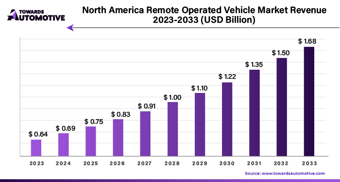 North America dominated the remote operated vehicle market in 2024 due to its remarkable offshore oil and gas reserves in the Gulf of Mexico, off the coast of Canada, and in the Arctic region. The exploration and extraction of such resources require extensive underwater operations involving repairs, maintenance, and inspection, further driving the growth of the market.