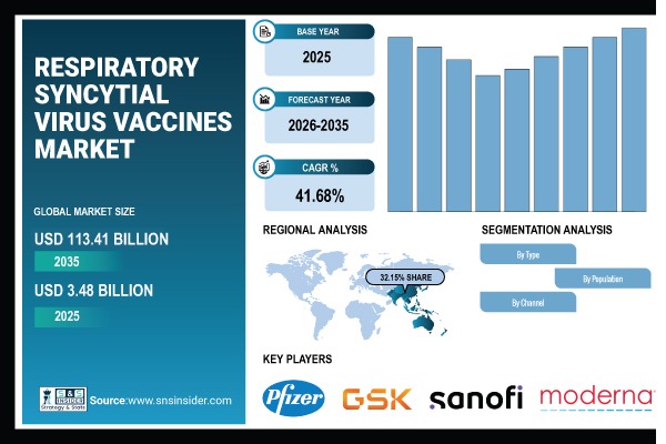 Austin, United States, April 27, 2026 (GLOBE NEWSWIRE) — According to SNS Insider, The Respiratory Syncytial Virus Vaccines Market size valued at USD 3.48 billion in 2025 and is projected to surpass USD 113.41 billion by 2035 and grow at a CAGR of 41.68% over 2026-2035. Due to increased awareness of RSV-related difficulties in infants, the elderly, and immunocompromised populations, the market for respiratory syncytial virus (RSV) vaccines is expanding quickly.