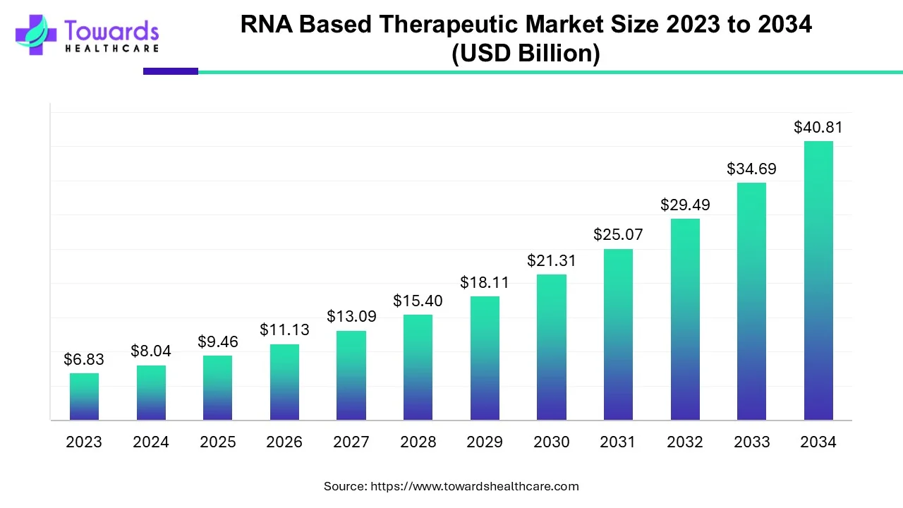 The global RNA based therapeutic market size is calculated at USD 9.46 billion in 2025 and is expected to reach around USD 40.81 billion by 2034, growing at a CAGR of 17.64% for the forecasted period.