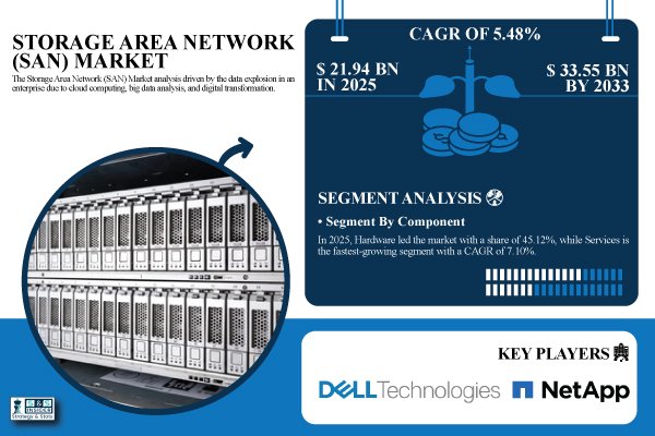 Storage Area Network (SAN) Market to Reach USD 33.55 Billion by 2033, Driven by Data Growth and Adoption of High-Speed Storage Technologies | SNS Insider