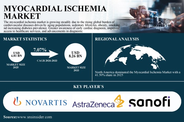Myocardial Ischemia Market to Hit USD 8.26 Billion by 2033, Driven by Rising Cardiovascular Disease Prevalence and Advanced Diagnostic Solutions – SNS Insider