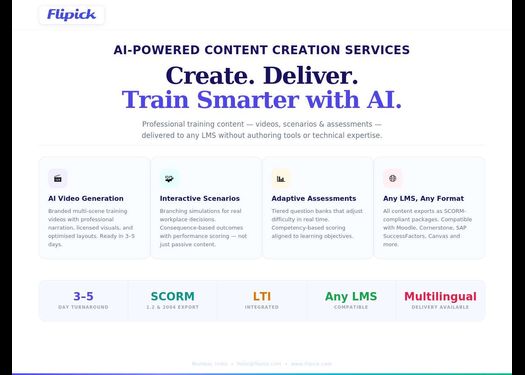 Professional video generation, interactive scenario training, and adaptive assessments delivered as managed services—compatible with all major learning management systems Mumbai,…