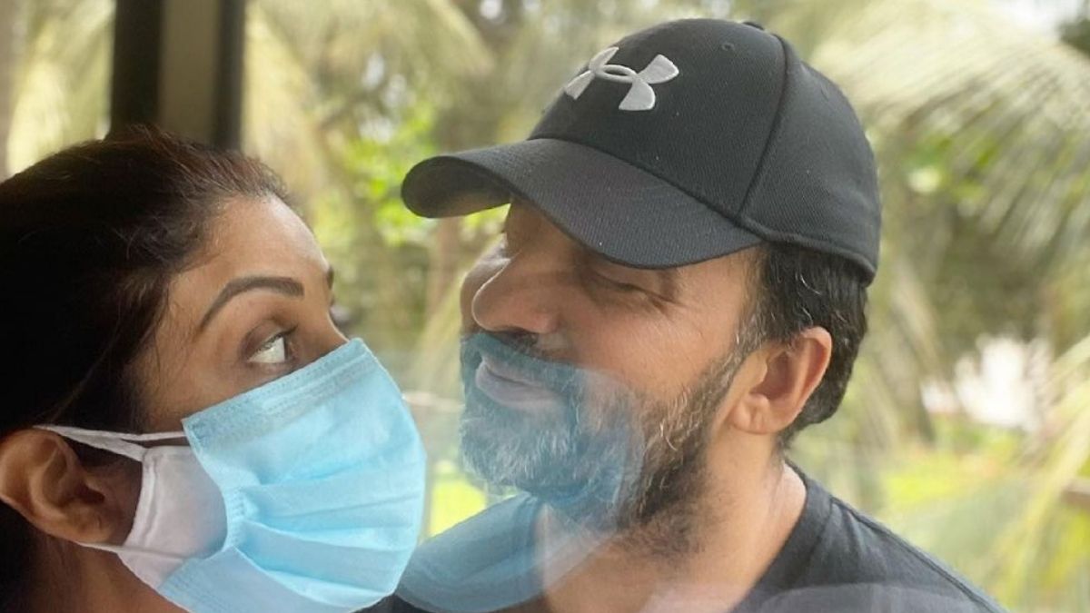 Shilpa, who tested negative for the virus, posted a picture on Instagram. In the image, the actress is seen inside while her husband Raj is standing outside of the house, there is a glass window between the two as they look at each other.