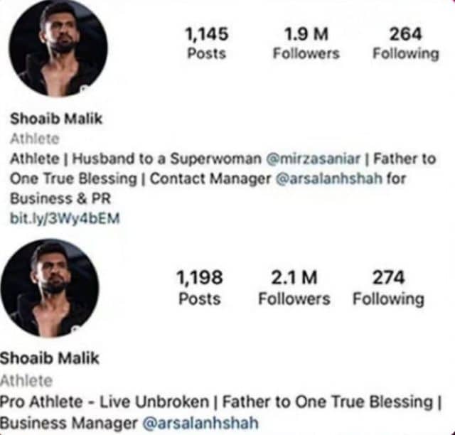 Fans of Shoaib and Sania have noticed that things aren’t going well between them. They came to this opinion after seeing an important change in the cricketer’s bio on his Instagram account. In his previous bio, it was mentioned, “Husband to a superwoman @mirzasaniar.” But it appears like Shoaib changed it because the bio now just says, “Father to One True Blessing,” along with other details. Fans are now worried that the couple may be headed for a divorce.
