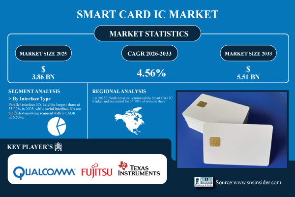 According to the SNS Insider,“The Smart Card IC Market size was valued at USD 3.86 Billion in 2025E and is projected to reach USD 5.51 Billion by 2033, growing at a CAGR of 4.56% during 2026-2033.”