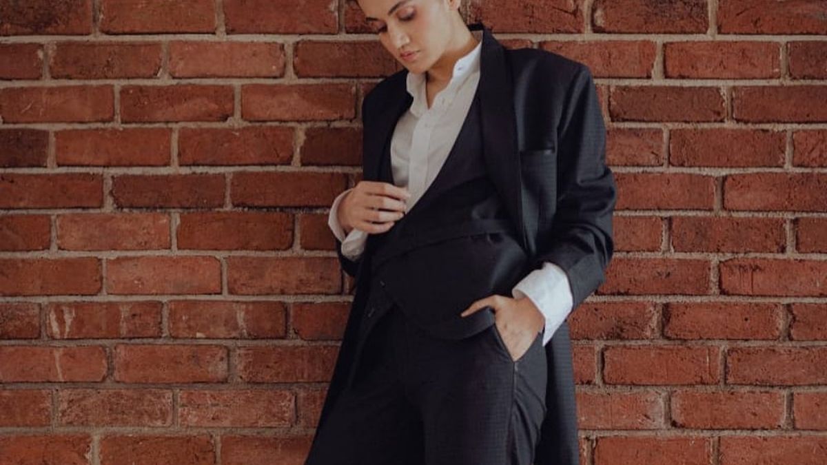 Taapsee posted the picture on Instagram, where she is seen wearing a black three-piece suit teamed with a white shirt.