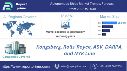 The Autonomous Ships Market is expected to grow from USD 29.00 Million in 2022 to USD 91.00 Million by 2030, at a CAGR of 17.83% during the forecast period. |Source:PRIMEIQ RESEARCH (OPC) PRIVATE LIMITED