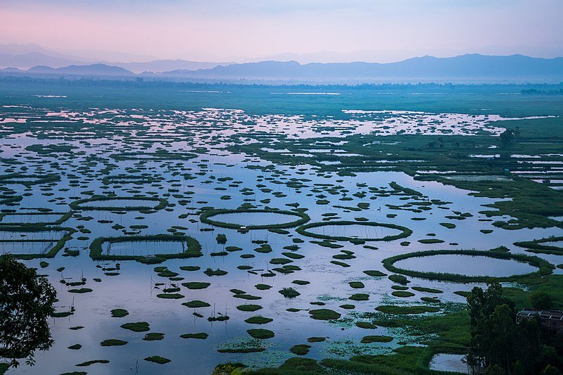 Keibul Lamjao National Park is located in the Bishnupur District and can be reached quickly from Imphal. The national park is famous for its floating decomposed plant materials locally called phumdis. It is also home to the endangered Manipur Eld deer or Sangai.