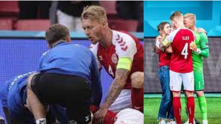 Simon Kjaer, who is the captain of Denmark, was one of the first players on the scene and appeared to…