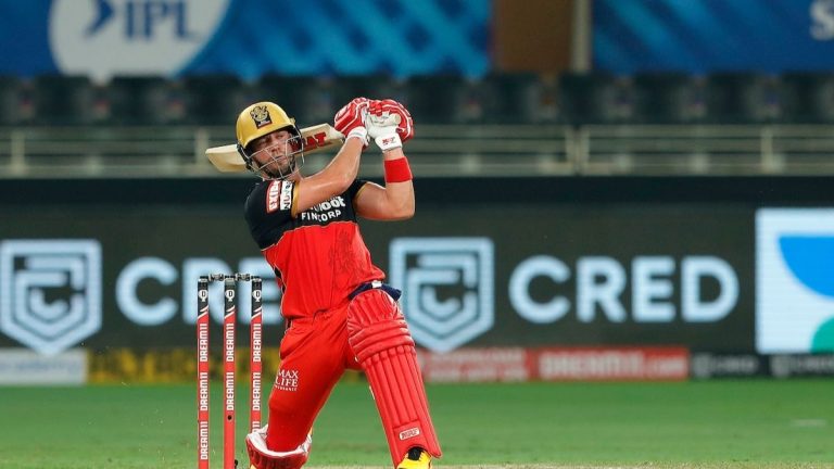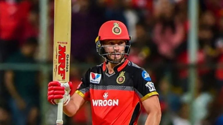 RCB's Ab de Villiers registers 5000 IPL runs during a match against Delhi Capitals at the Narendra Modi Stadium