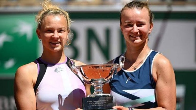 Barbora Krejcikova of the Czech Republic won the women’s doubles title with compatriot Katerina Siniakova of the Czech Republic at…