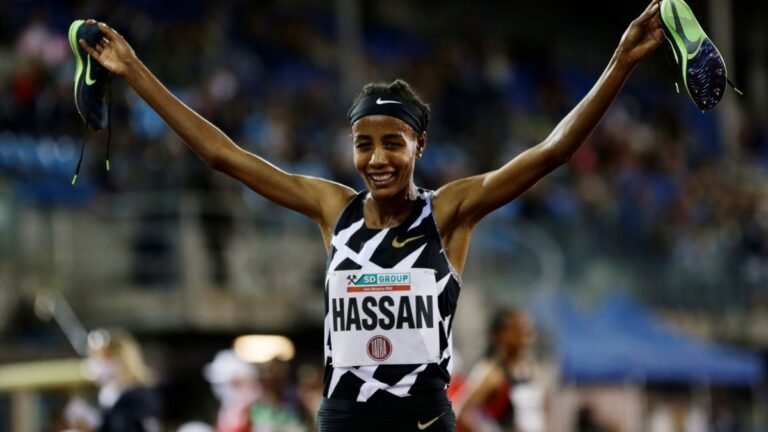Hassan also owns the mile, one-hour, and five-kilometer road racing records.