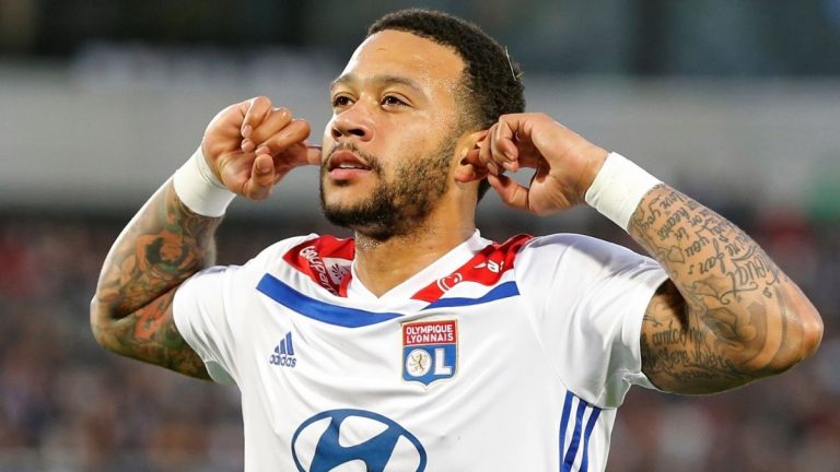 Barcelona online stores displayed reported transfer target Memphis Depay shirts.