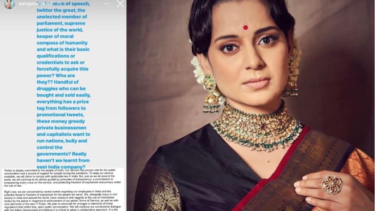 Kangana Ranaut slams Twitter on her Instagram account when twitter released their statement showing concern about freedom of speech