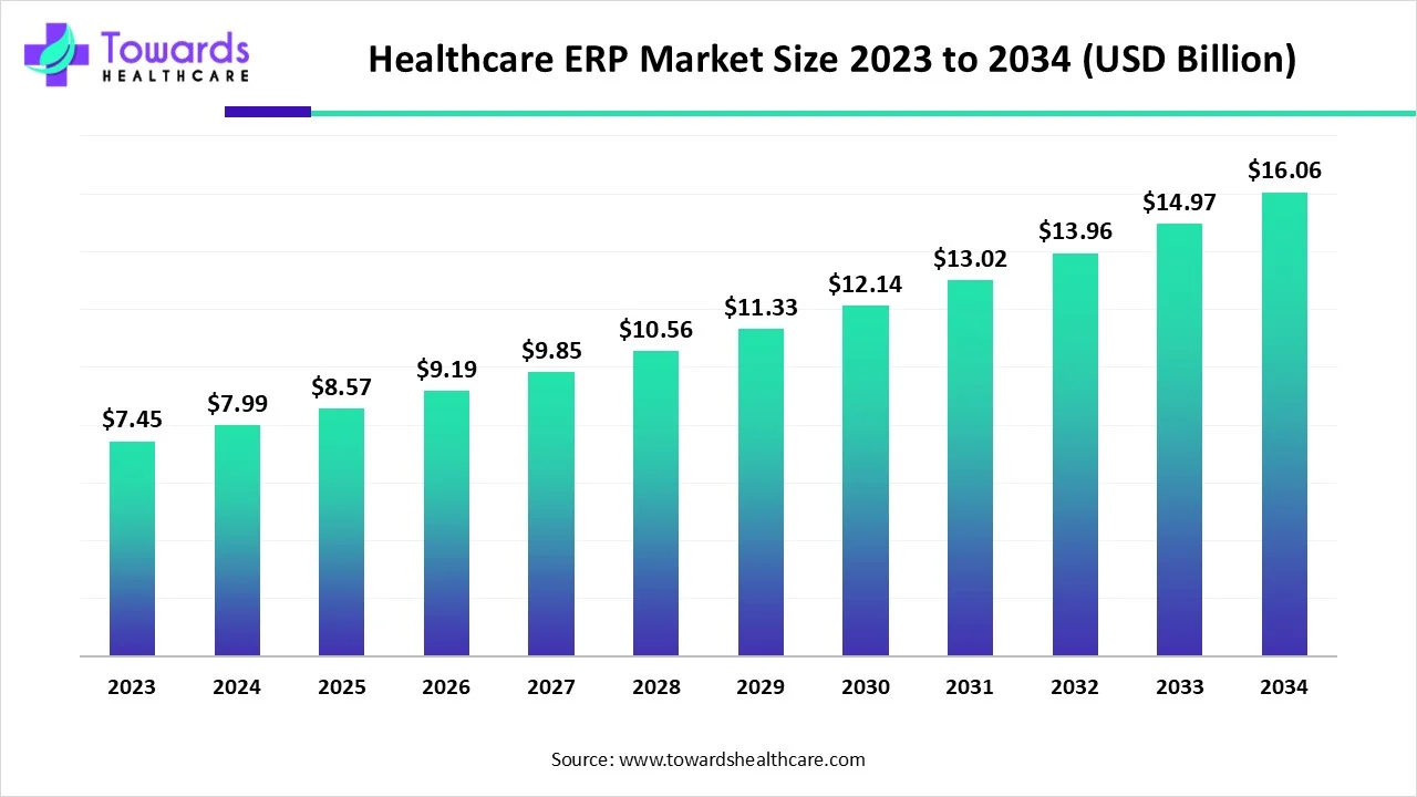 The global healthcare ERP market is valued at $7.99 billion in 2024 and is expected to grow to $8.57 billion in 2025. Looking ahead, it’s projected to reach approximately $16.06 billion by 2034, expanding at an annual growth rate of 7.23% from 2025 to 2034. This growth is fueled by the increasing demand for advanced medical treatments, continuous technological innovations, and the rapid expansion of the healthcare industry.