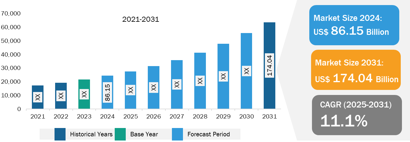 The UPS and Inverter market was valued at US$ 86.15 billion in 2024 and is projected to reach US$ 174.04 billion by 2031; it is expected to register a CAGR of 11.1% during 2025–2031.