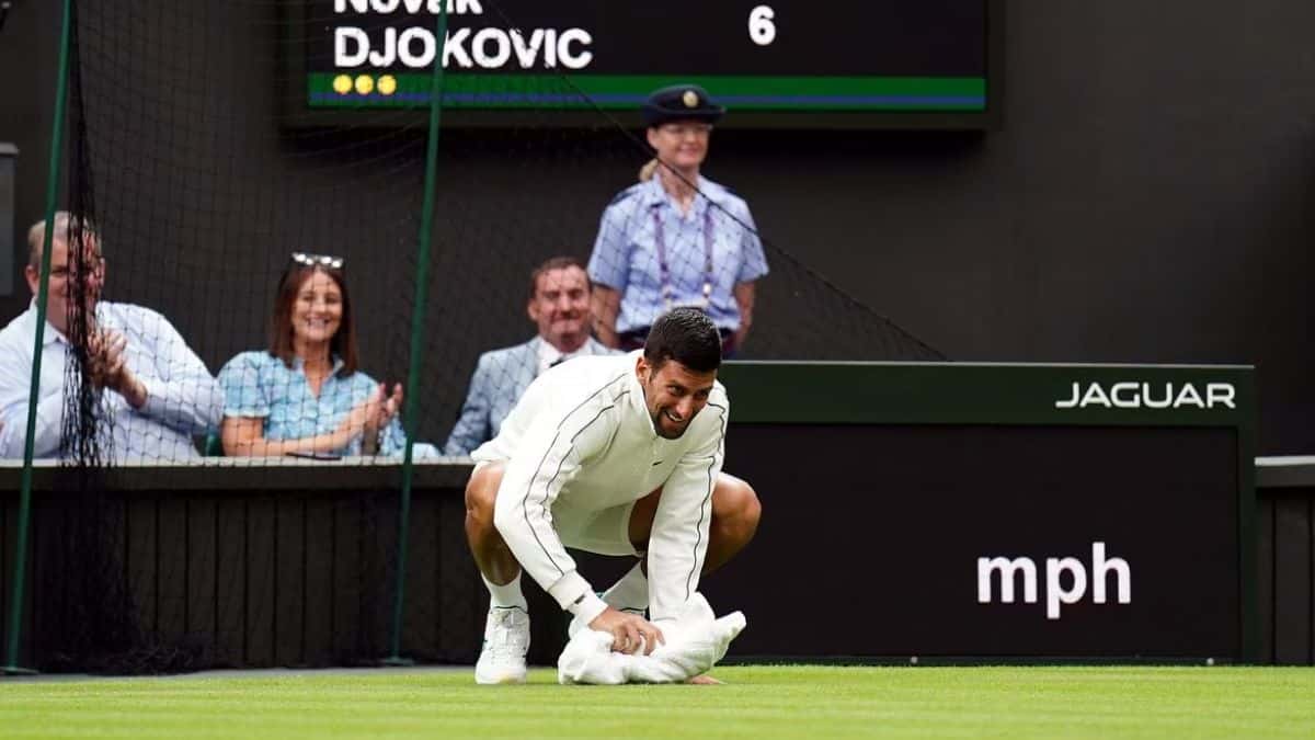 Djokovic, who is as well-known for his witty and humorous antics as he is for his on-court brilliance, had a funny moment on the first day of the All-England Championships when he attempted to dry the court by himself using only a towel after showers at the centre court.